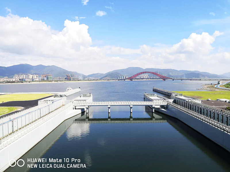 近日,公司承接的单体合同额最大的北仑区梅山水道抗超强台风渔业避风锚地工程(水工部分)第3标段顺利通过南堤单位工程质量鉴定暨合同工程完工验收。该项目集区域防潮防洪、水环境整治、渔业避风锚地、滨海旅游开发、疏港公路交通五大功能为一体。公司主要承担的工作内容为:南、北堤枢纽水闸、船闸、活动旋转钢桥等金属结构制作安装;固定卷扬启闭机、桥机、液压启闭机、自动化控制设备等成套采购安装等。其中船闸设计一、二线两座,采用底轴驱动翻板闸门。