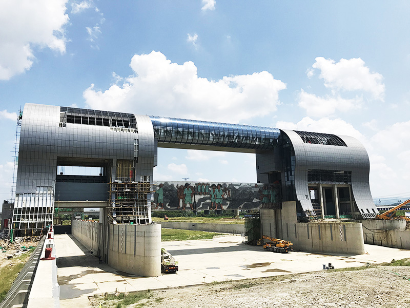 这扇释放着江能公司水利情怀的科技创新型闸门具有两大特点:一是创国内平面提升式闸门跨度规模之最,二是首创金属浮雕同闸门一体的景观型闸门,引起业内广泛关注。