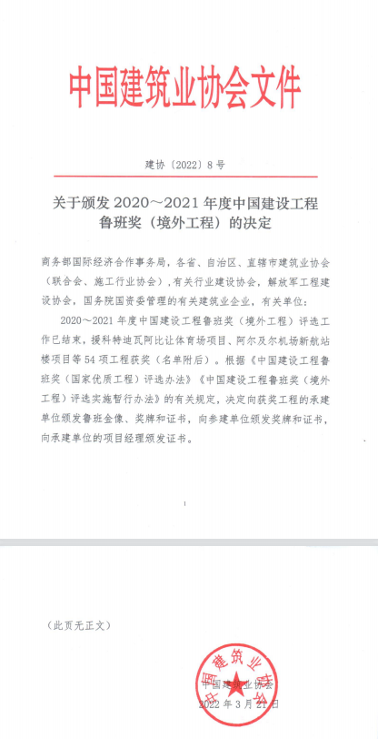 人间四月芳菲尽,山寺桃花始盛开。在这美好的四月,迎来一个振奋人心的好消息:公司参建的越南油汀600MW(DAU TIENG)光伏发电项目获得了2020-2021年中国建设工程境外鲁班奖,这是公司获得的首个境外参建项目鲁班奖,也是获得的第四个鲁班奖。除此之外,该项目还获得了2020年度中国电力优质工程奖。