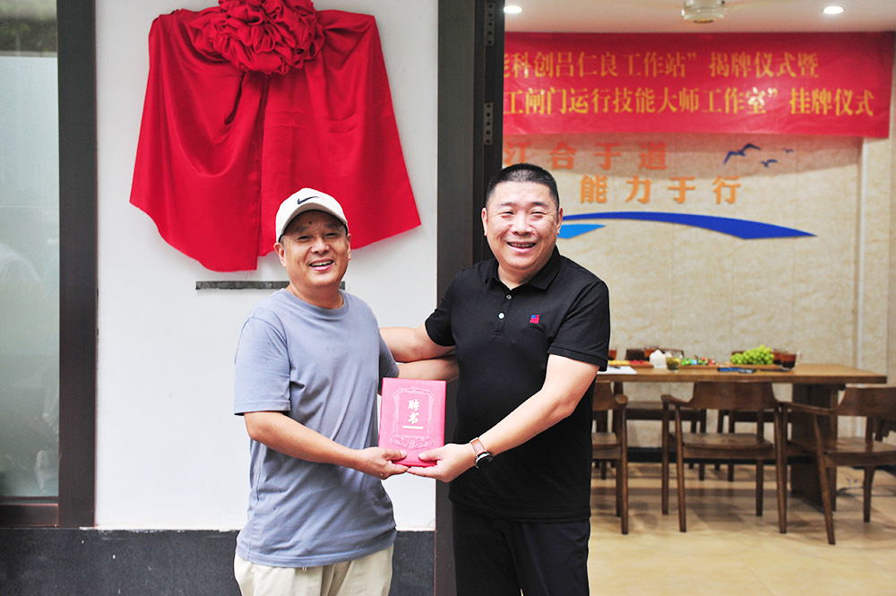 总工程师周毓、运行副总经理万志军为“万志军水工闸门运行技能大师工作室”挂牌