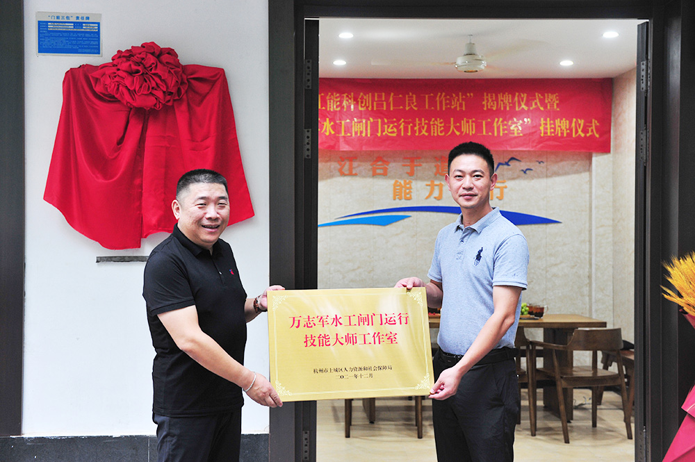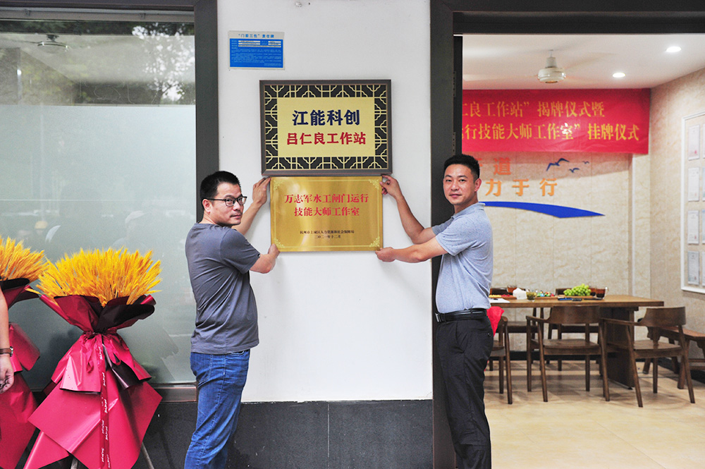 8月17日下午,公司“江能科创吕仁良工作站”揭牌仪式暨“万志军水工闸门运行技能大师工作室”挂牌仪式在新昌县顺利举行。